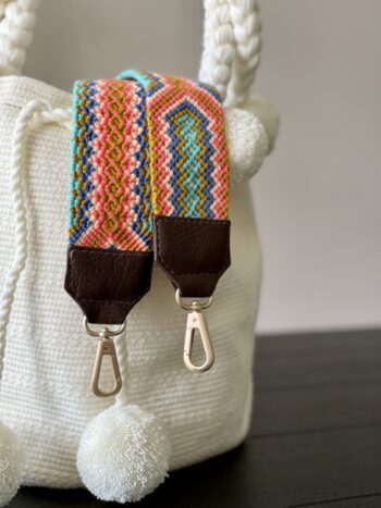Jeder Trageriemen wird per Hand gewebten und geknüpft und ist daher ein Einzelstück.