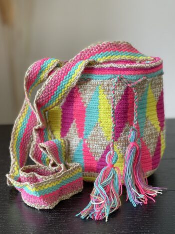 Jede Lela Mochila wird per Hand gehäkelt und gewebt und ist daher ein Einzelstück.